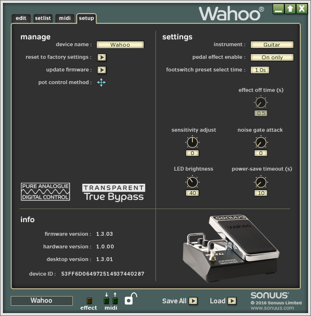 The digital control and configuration of the Wahoo is very flexible and powerful. Although you can access all of this power from the Wahoo's control panel, to make it faster to give you an overview of all the settings, we have provided a Desktop Editor Software application that runs on both Microsoft Windows and Apple OSX.